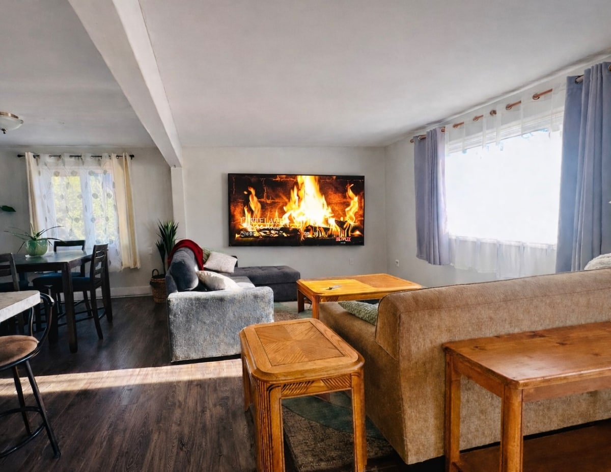 Moderne kældersuite i træhus. Et soveværelse med queensize-dobbeltseng, skab og skrivebord. Perfekt til singler eller par. Køkkenet har en mikrobølgeovn, minikøleskab, varmeplade, brødrister, kedel og kaffemaskine. Et bord i pubstil med plads til fire. Wi-fi og smart-tv inkluderet. Denne hyggelige suite har sin egen private indgang og to store vinduer, der lukker masser af naturligt sollys ind. Nyd alt det, Valemount har at tilbyde! Vi glæder os til at se dig.