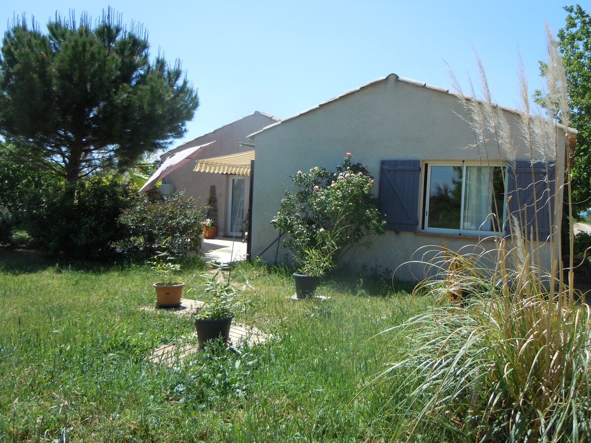 Hytte i stueetagen 31m² i rolig beliggenhed i Les Oliviers et les Lavandes 800m fra Valensole. 1 soveværelse med seng til 2 personer, klik-klak seng til 1 barn i stuen, 1 badeværelse, toilet, køkken, privat have med grill. I nærheden af Gorges du Verdon, Gréoux, Luberon. Morgenmad den første morgen. Udlejning fra 2 nætter. Kæledyr tilladt, efter anmodning.