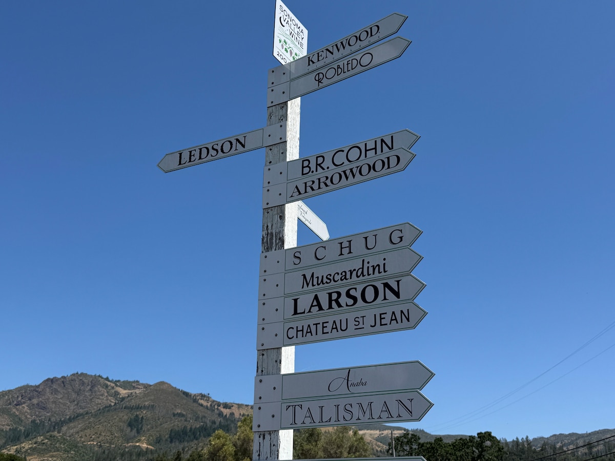 Kom, bo og slap af med dine kære i denne moderne bondegård i hjertet af California Wine Country. Vi er kun få minutter fra Napa og en kort køretur fra San Francisco og Sacramento. Vi har hjemmebiograf med 65" QLED TV og omgivet lydsystem, elektriske lænestole for bedste komfort, mens du nyder film, fuldt udstyret køkken, fyldt køleskab med rent drikkevand, terrasse med siddepladser med bålplads gemt under frugttræer og vin. Vores sted er børne- og familievenligt.