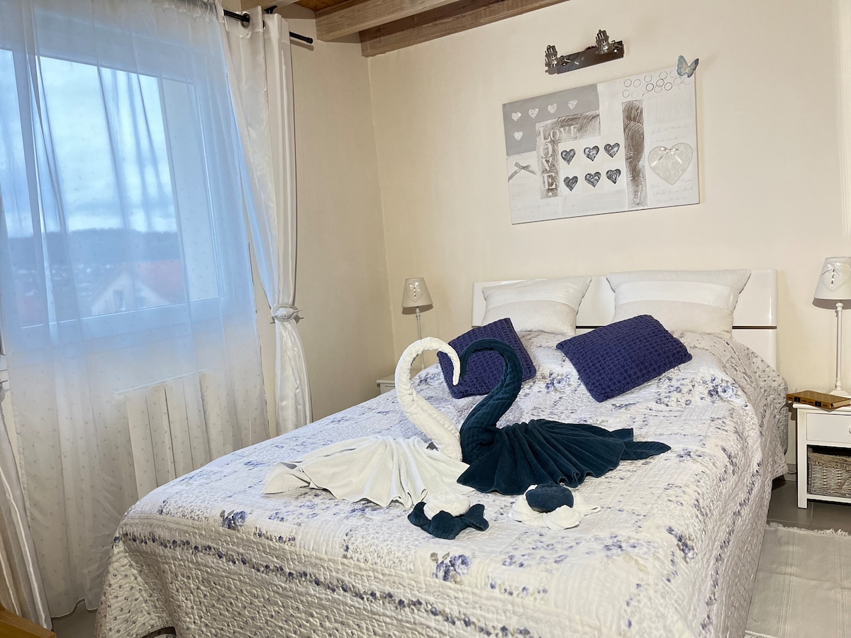 Paul og Emmanuelle byder dig velkommen til "Breuil", en lille hyggelig lejlighed i centrum af Vesoul, i en rolig gade med en indre gårdhave. Det er beliggende i et smukt byhus, hvor du kan nyde terrassen og haven. Aircondition vil bringe dig indendørs i tilfælde af stærk varme. Te, kaffe og urtete er til rådighed. Velkommen!