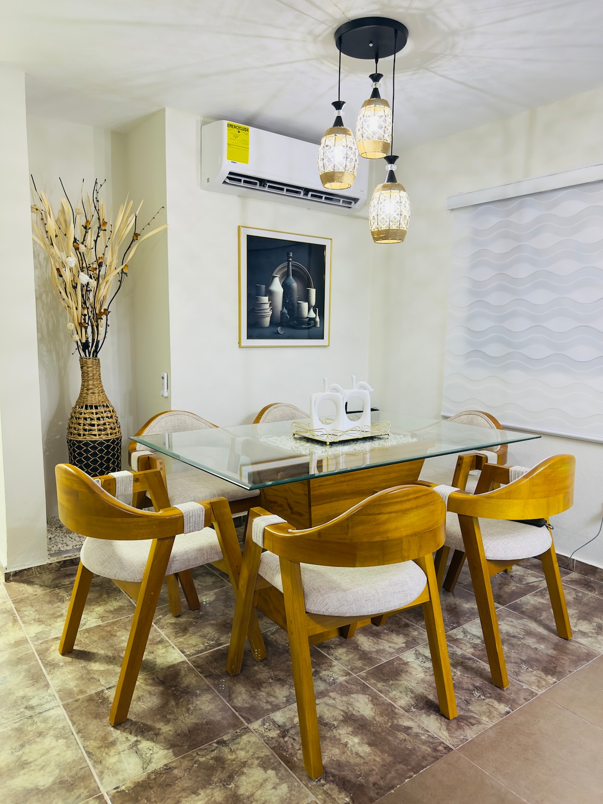 Tag hele familien med til dette fantastiske sted, hvor ro og sikkerhed er de største attraktioner i denne lejlighed. Beliggende ved udgangen af Navarrete, kun 5 minutter fra byens centrum, 35 minutter fra stranden, 5 minutter fra Esperanza kommune og 30 minutter fra Santiago og Mao Valverde. * 3 værelser med aircondition. * Køkken udstyret med: Køleskab, komfur, mikrobølgeovn, køkkenredskaber. * Stue * Spiseplads * Vaskemaskine og tørretumbler