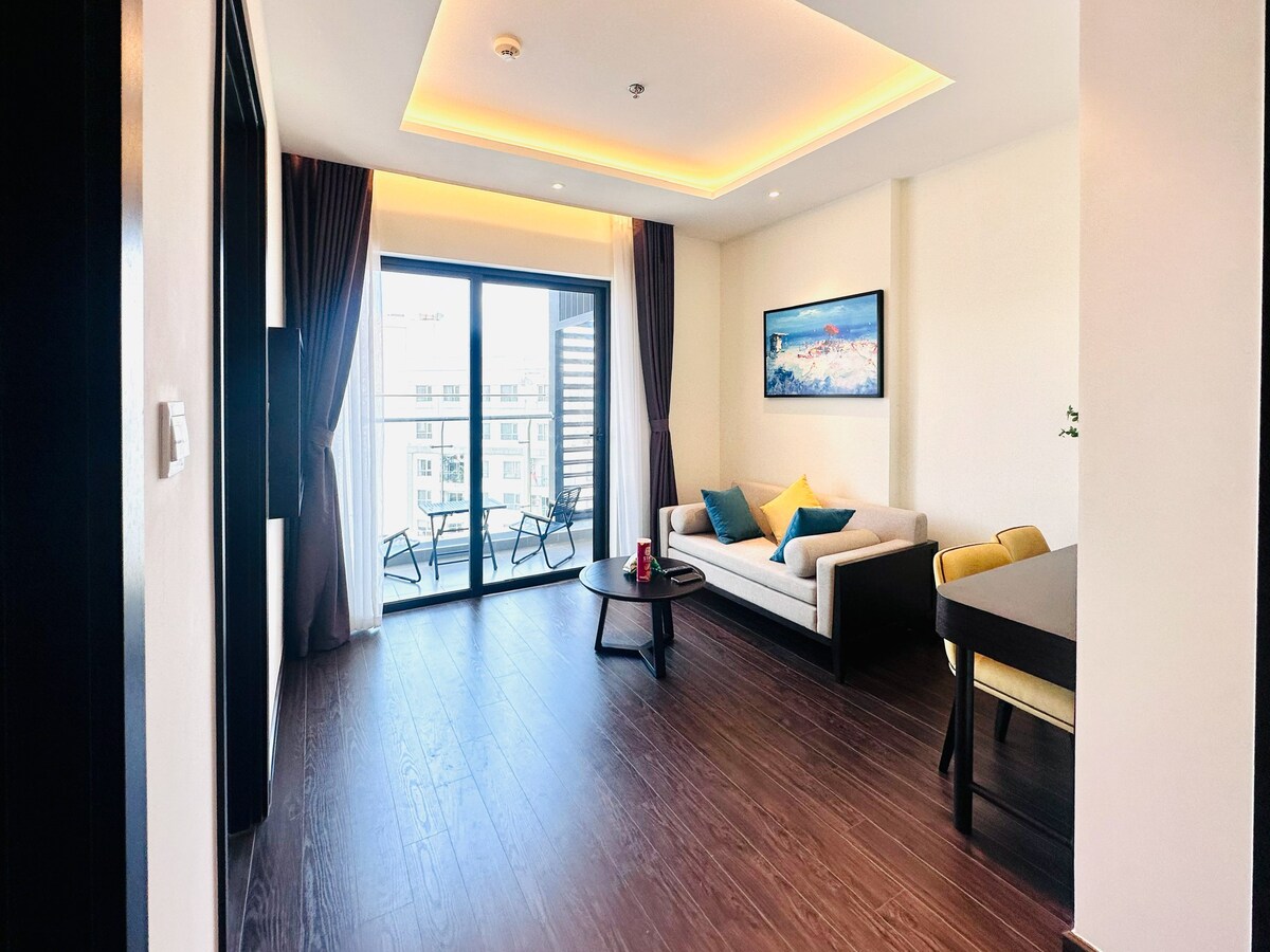 Căn hộ 2PN cao cấp 70m², căn góc với view biển trực diện, ngắm hoàng hôn từ ban công phòng khách và phòng ngủ. 2WC có bồn tắm, thiết kế hiện đại, nội thất sang trọng chuẩn 5⭐, từng vận hành bởi Best Western. Phòng King view biển, phòng Queen thoáng mát, phòng khách rộng kết nối ban công, bếp đầy đủ tiện nghi. Máy giặt, tủ lạnh, Wi-Fi, hồ bơi, gym, khu vui chơi trẻ em, bãi đỗ xe, lễ tân 24/7. Phù hợp cặp đôi, gia đình, nhóm bạn, khách công tác.