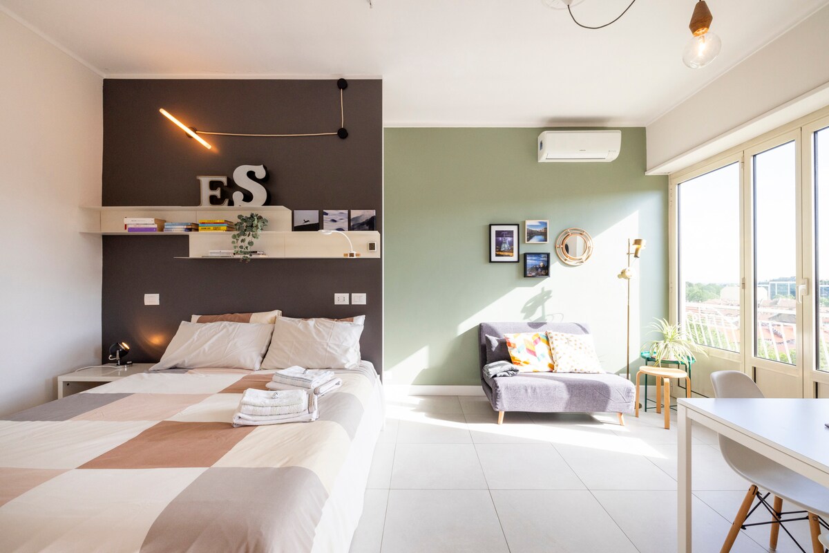 Velkommen til dit tilflugtssted på 7. etage med en spektakulær udsigt over Mole Antonelliana og Alperne. Ideel til dem, der søger ro uden at opgive bekvemmeligheden ved at være tæt på centrum. Lejligheden tilbyder: - indgang med pansret dør - Stue med sovesofa på halvøen og wi-fi - Balja med udsigt over Mole, for at nyde vidunderlige solnedgange. -Køkken udstyret med ovn og opvaskemaskine - Soveværelse med hukommelsesmadras, walk-in-garderobe og balkon på verandaen