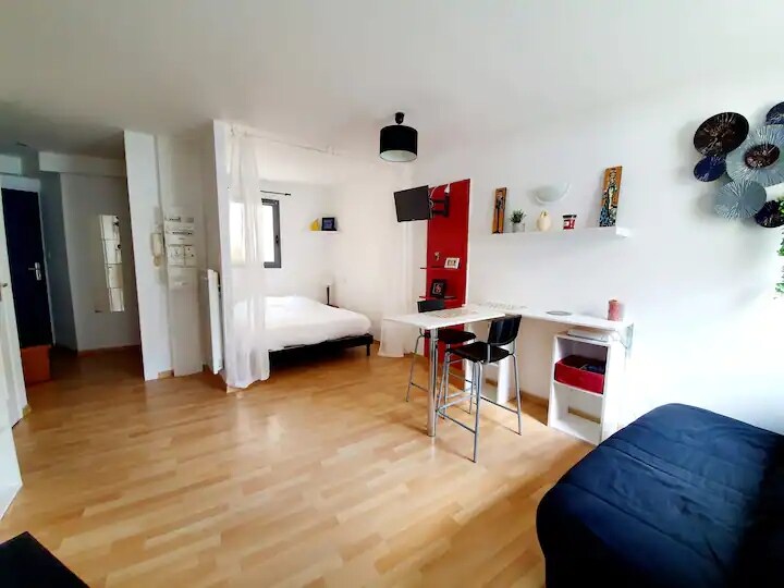 Meget lys 2-værelses lejlighed (soveværelse mod nord med balkon/stue mod syd) renoveret med charme (solide parketgulve, 3 m under loftet) og ideelt beliggende (900 m gang fra stationen og 600 m fra havnen) 🏡 Primær bolig 🗝️ Indtjekning uden vært 🛏️ Sengetøj 📶 Wi-fi ☀️ Concierge (juli-aug) /*\ Juletræ Adgang: 2. sal, x elevator, x PMR Parkering: betalt og gratis i nærheden (ankomstguide) Bus: nederst (Conleau) Faciliteter: bageri/jord, Biocoop, Monoprix, apotek, restauranter