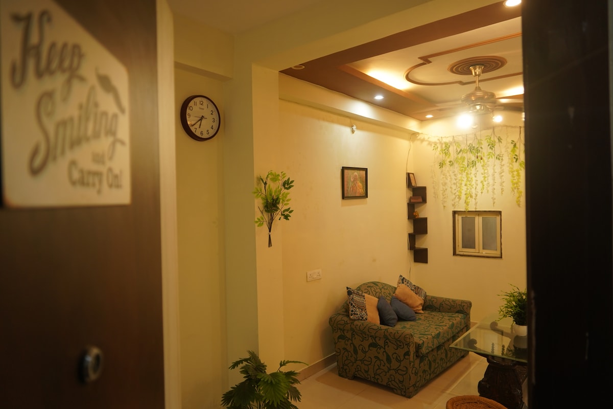 Our house is located in the heart of the city in a quiet, residential gated society. It is a clean, well-ventilated space with nice daylight in every room. We've left no stone unturned to make sure you don't miss your home when you're staying with us. You'll be able to enjoy: -A fully functional kitchen with all the essentials well-stocked. -An independent terrace & two balconies. -Parking - Two bedrooms and two modern washrooms