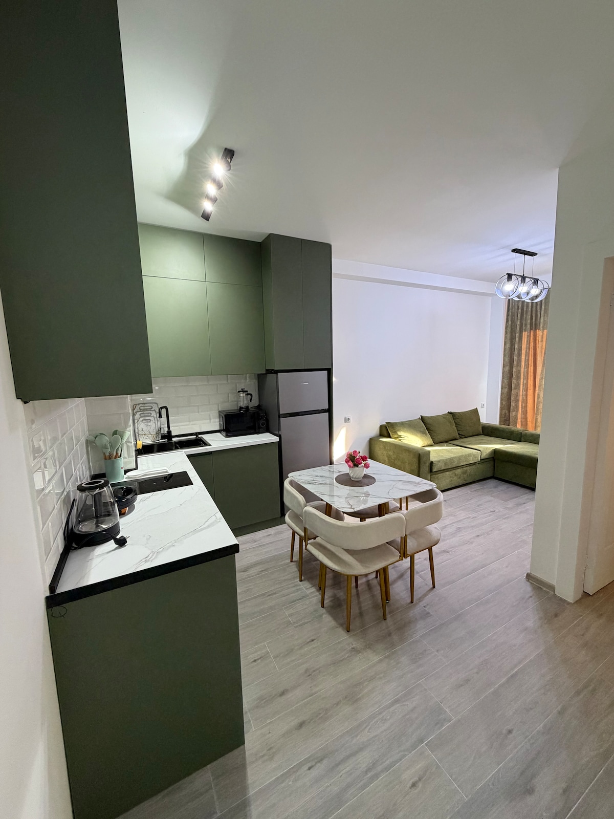 Just finished 40 sqm 2-room apartment with sunny balcony near Didveli mountain. Apartment is located in one of the most desirable residential complex - Didveli Residence - which offers playgrounds, basketball/football court, restaurant, grocery shop, outdoor common areas, parking. Adjacent forest has relaxing swings, picnic tables/settings, lovely pathways along brook and fairytale like ambience. Didveli ski lifts are located within 700 meters and are accessible during winter and summer.