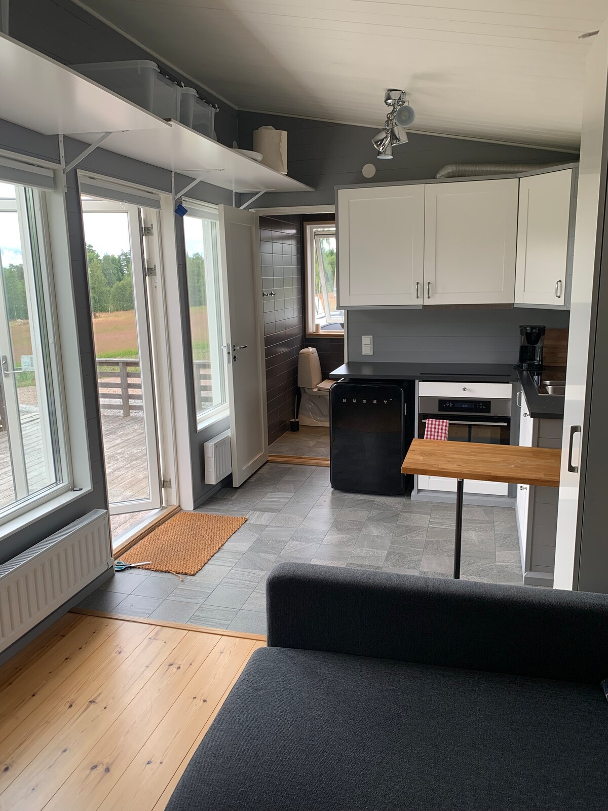 Modern stuga på lantgård. Gården ligger mycket fridfullt på landet utan störande vägar eller järnvägar. Gångavstånd till flera sjöar och leder för MTB-cykling och vandring bokstavligt talat inpå knuten. Stugan ligger vinklad så den känns privat trots sin placering nära gården. Gården har höns, katter, hundar och nötkreatur på sommarhalvåret. På hösten finns stora möjligheter till både bär- och svampplockning på nära håll. Stugan lämpar sig för två personer, möjligen ett mindre barn också.