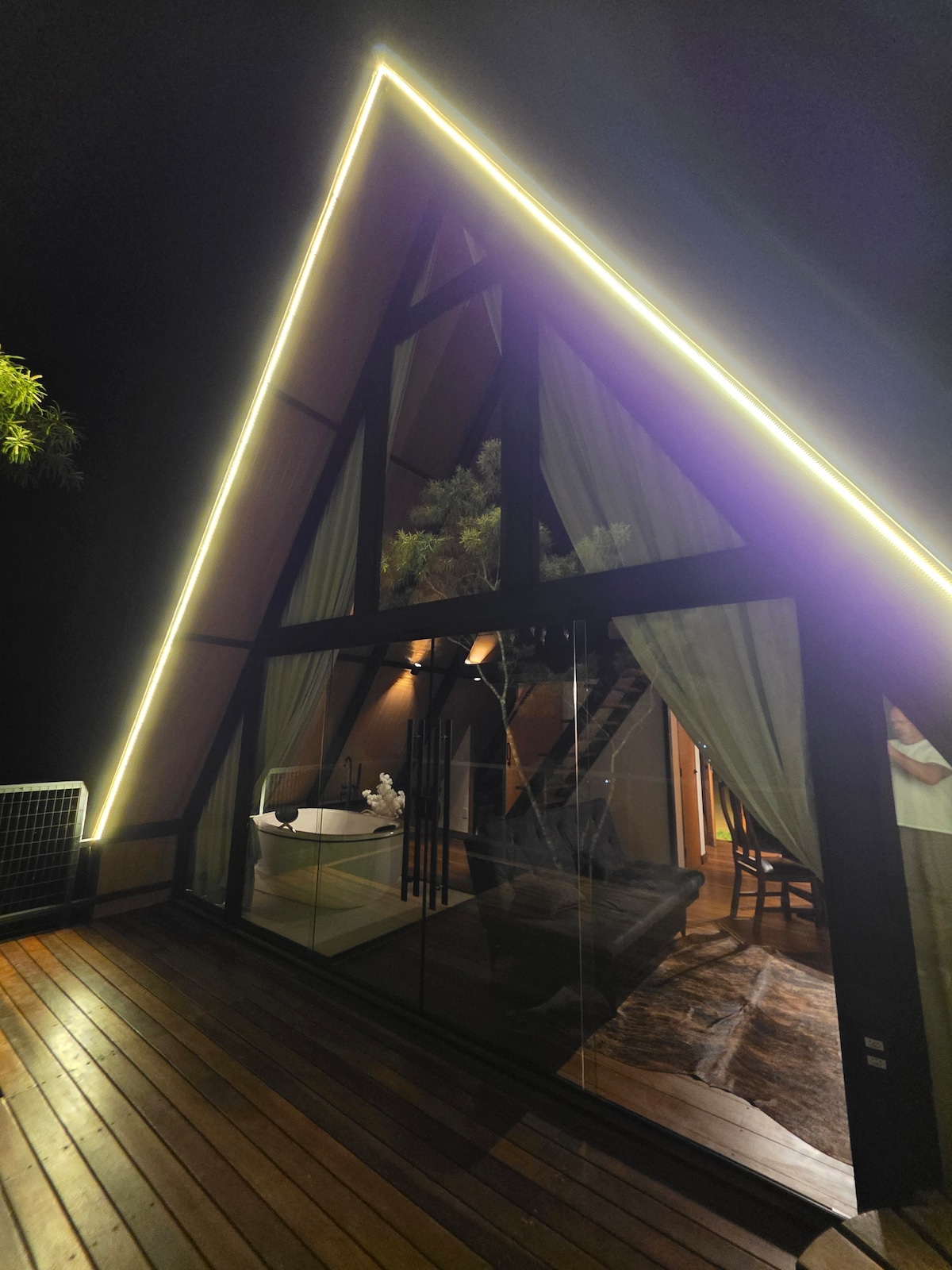 Oplev en oplevelse i en træhytte med al komfort. Varmt vand inklusive køkken, fiberfiber Wi-Fi og smart-tv med Sky. Swimmingpool med kildevand og vandresti i et område med frodig Atlantic Forest.