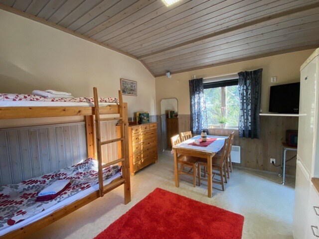 Bo i hjertet af Højkysten, et UNESCO-verdensarvssted. Du vil have din egen hyggelige træhytte med smuk udsigt og uendelige muligheder for at nyde naturen lige uden for døren. Det er et godt sted at slappe af og nyde freden eller være så aktiv, som du vil. Nabobugt til populære Norrfällsviken, hvor du finder restauranter og caféer, en 18-hullers golfbane, naturreservater, vandrestier, en stor havstrand og en smuk fiskerlandsby fra 1600-tallet.