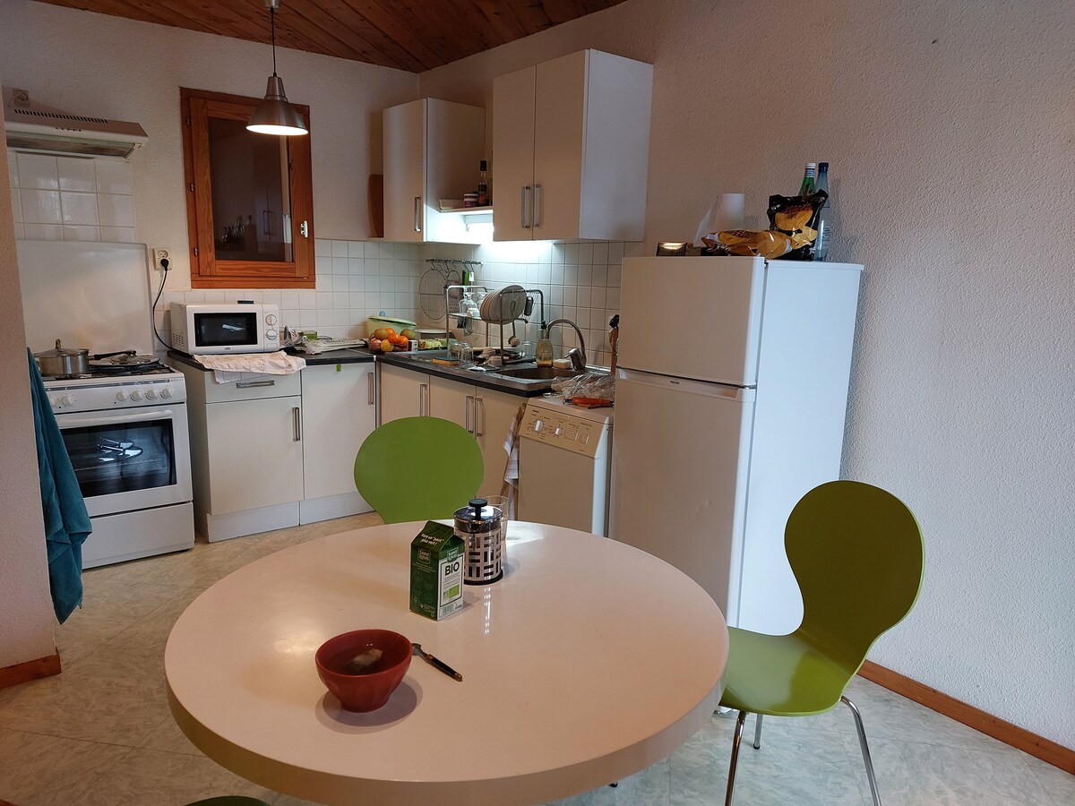 Smuk lejlighed sover 4, med soveværelse, sydvendt balkon meget lyse, fantastisk udsigt over dalen. Nyligt renoveret, funktionelt, veludstyret, tæt på alle faciliteter (butikker, restauranter, skiudlejere, pakker) Tv, flersprogede brætspil Ski og cykelstier ligger 2 minutters gang derfra (der er et skab til rådighed) Rabat på skiudstyr er muligt Gratis parkering foran boligen Kom og nyd disse boliger som par med venner eller familie!