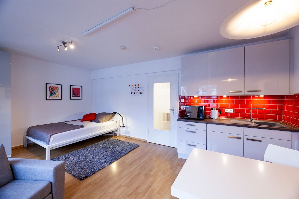 Denne lejlighed er beliggende som en separat enhed med sin egen "byhave" på et af de ældste steder i Venlo. Der er 1 soveværelse. Alt er i stueetagen og har et køkken med komfur, opvaskemaskine og ovn mikrobølgeovn. Stuen er lys og komfortabel. Dit kæledyr er velkomment. Parkering er tilgængelig på bagsiden. Lejligheden ligger i et lukket pollarområde. Du kan køre mellem kl. 06.00-12.00 og 18.00-20.00. Du kan altid køre ud.