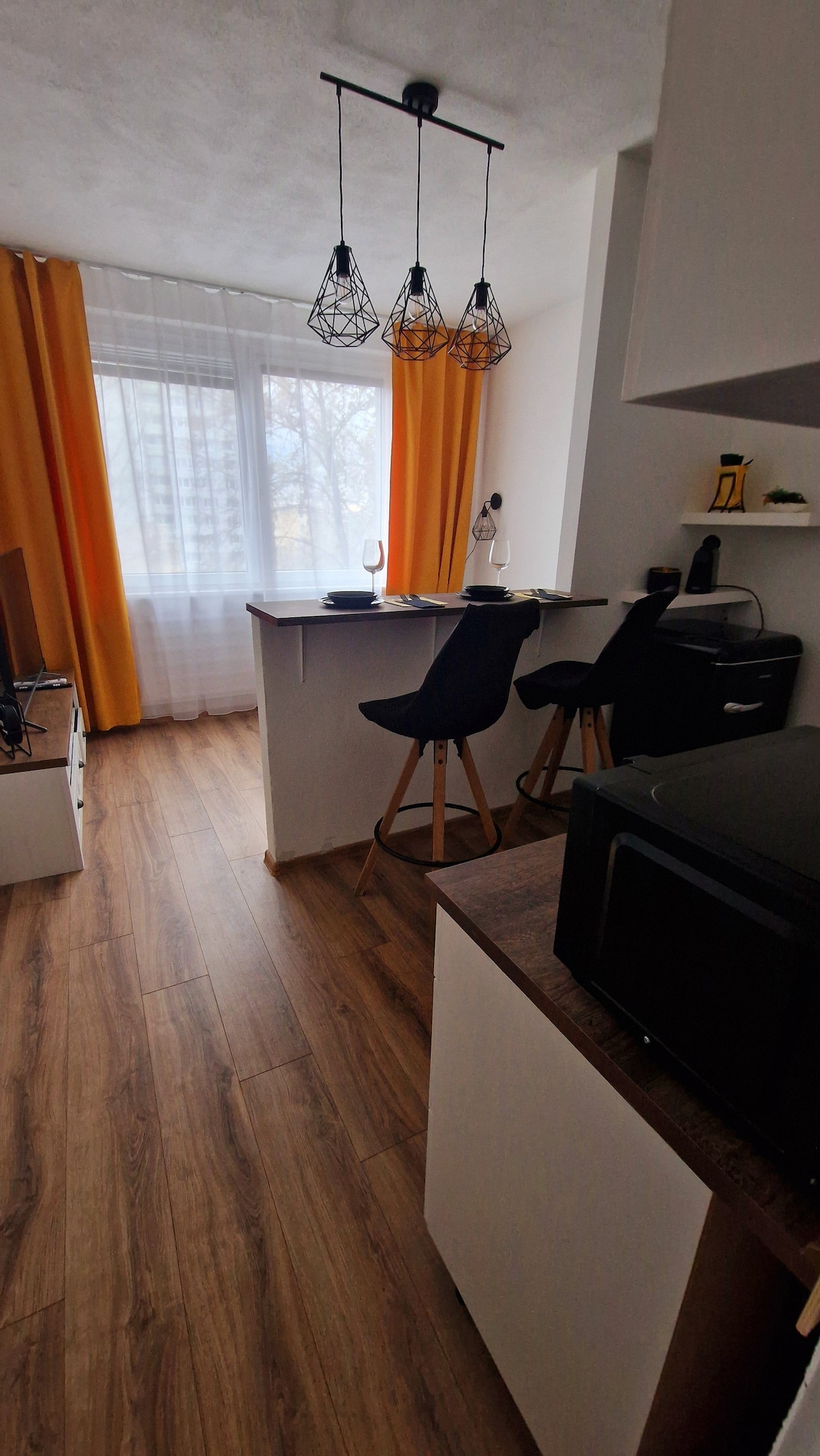 Ponukam na krátkodobé či dlhodobé ubytovanie. Byt pozostava z jednej velkej izby , kupelne spojenej s WC, balkon. orientácia bytu je juhovychod. Vyborna lokalita, blízko MDH, potraviny prijazd na R1 cca 5 minut. V byte sa nachádza chladnička, rychlovarna kanvica a v kuchynskej linke zakladne potreby. WiFi. TV so zakladnou ponukou Antik. V kúpeľni zakladne vybavenie v podobe uterakov, mydla a fen. Pri ubytovaní na 3 a viac nocí menšia pozornosť.