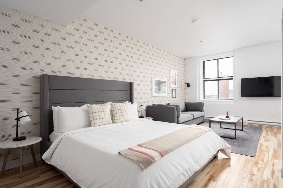 Savvy er en rummelig luksuslejlighed med 1 soveværelse i hjertet af Vieux-Montréals gamle havn, få skridt fra restauranter og flodbredden, hvor op til 4 gæster kan sove komfortabelt. Perfekt til vinterferier, familierejser, forretningsrejser, arrangementer i Palais des congrès eller et raffineret ophold på én nat. Med højt til loftet, historiske mursten, elegant indretning og et roligt soveværelse med udsigt over gårdhaven føles det som et boutique-hotel, men helt privat, med førsteklasses faciliteter, hurtig wi-fi og en 5-stjernet vært til din tjeneste.