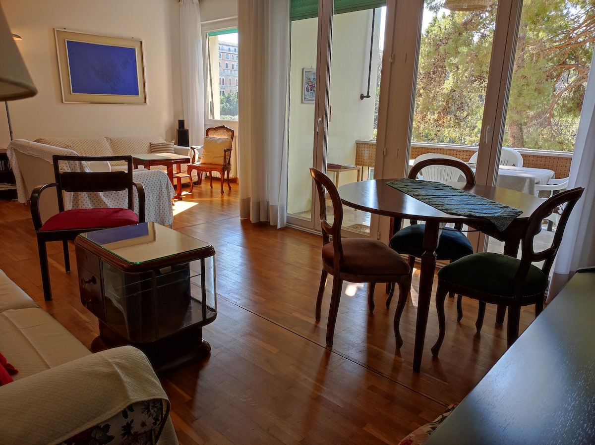 "Il ramo di kaki" er en meget komfortabel lejlighed på 120 kvadratmeter. Det var mine bedsteforældres sommerresidens i 50'erne. Lejligheden blev fuldstændig renoveret i 2018. Den ligger på anden sal i det historiske hus på hovedgaden i Lido, Gran Viale. Huset har bevaret de originale og smukke venetianske terrazzogulve og har samtidig alle de moderne bekvemmeligheder. "Uanset hvor du tager hen, bliver det på en eller anden måde en del af dig" - Anita Desai