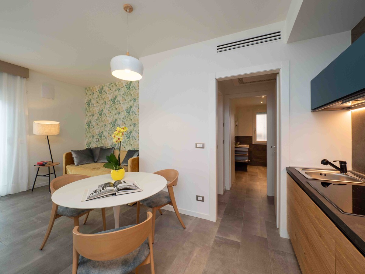 Velkommen til dit fredelige fristed i Mestre! Denne lyse og funktionelle atelierlejlighed ligger i et roligt område med gode forbindelser. Det er ideelt for solorejsende eller par, og det er den perfekte base til at udforske regionen, mens du nyder dit eget private rum. 🛏️ Fleksible sovemuligheder 🌿 Eksklusiv privat terrasse med udendørs siddepladser – perfekt til morgenkaffe eller aftenafslapning 🚉 Kun 5 minutters gang til Mestre tog- og busstation – nå Venedig på 10 minutter.