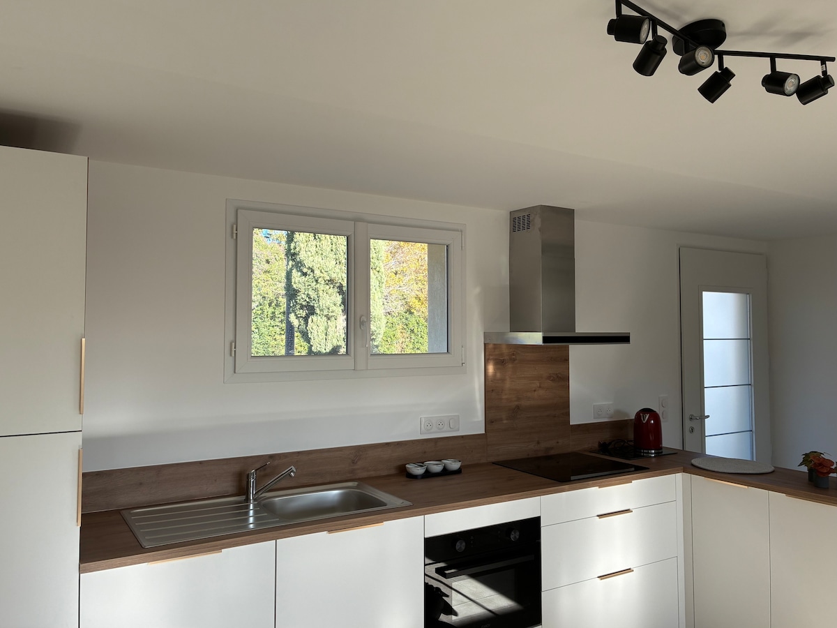 Ejendom 20 minutter fra Aix en Prov med en betagende udsigt over Sainte Victoire, der var så vigtig for Cezanne. Denne bolig byder dig velkommen med have og parkering. Uafhængig adgang ca. 40 m2. Skyggefuld terrasse, hvor der er en stor solrig terrasse. En 10x7 swimmingpool i sæsonen (fra 1. juli til 31. august), som du muligvis deler med os. Et integreret køkken, der er åbent ud til tv-spiseområdet, samt en master-suite (king size) 180x200 med badeværelse og toilet, selvfølgelig alle med aircondition. ❄️ 👍