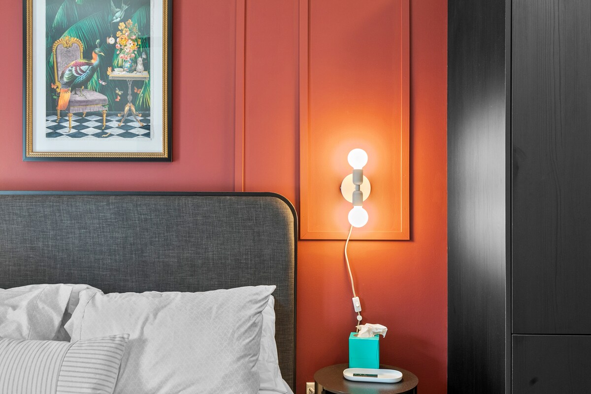 Nyd komforten i denne stilfulde lejlighed i centrum af Birmingham, der ligger inden for 2 minutters gangafstand fra UAB Hospital, Publix, masser af restauranter, kaffebarer og barer i midtown - 7 minutters gang til Regions Field og meget mere, den perfekte beliggenhed til dit langvarige fjernarbejdsophold, ferie eller lange weekend. * Tøjvask i boligen * Hurtig wi-fi * 50" smart-tv med apps * Mørklægningsgardiner * Fuldt udstyret køkken * Indtjekning uden vært * Nyt fitnesscenter