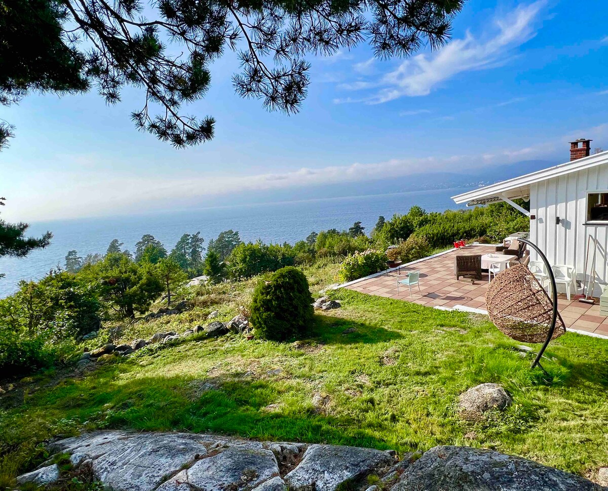 Hytte nær søn med panoramaudsigt over Oslofjorden