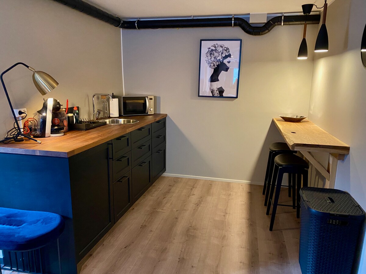 Lille og nyrenoveret atelierlejlighed. Lejligheden har et smart-tv og Wi-Fi samt håndklæder, sengetøj og en hårtørrer. Køkkenet er udstyret med køleskab, brødrister, mikrobølgeovn, airfryer, kaffemaskine og en elkedel, hvor du kan lave kaffe eller te.