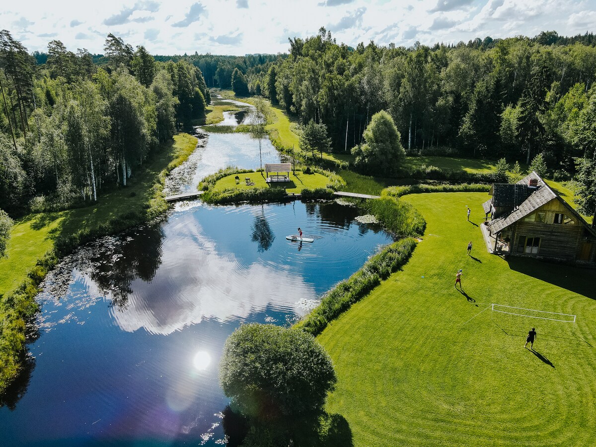 I bund og grund er det et lettisk badehus med smuk udsigt, du kan dele med dine nærmeste. Hvis du ønsker det, har du mulighed for at opleve traditionel sauna (ekstra + 60 EUR, der er også udendørs spabad til rådighed + 60 EUR og tage en frisk svømmetur i en klar dam ved siden af badehuset. Omgivelserne har udsigt over en større sø, og hvis du vil, kan du endda tage en bådtur eller fiske. Værtshuset ligger 80 meter væk, så du kan have dit privatliv. Oplev Letland!