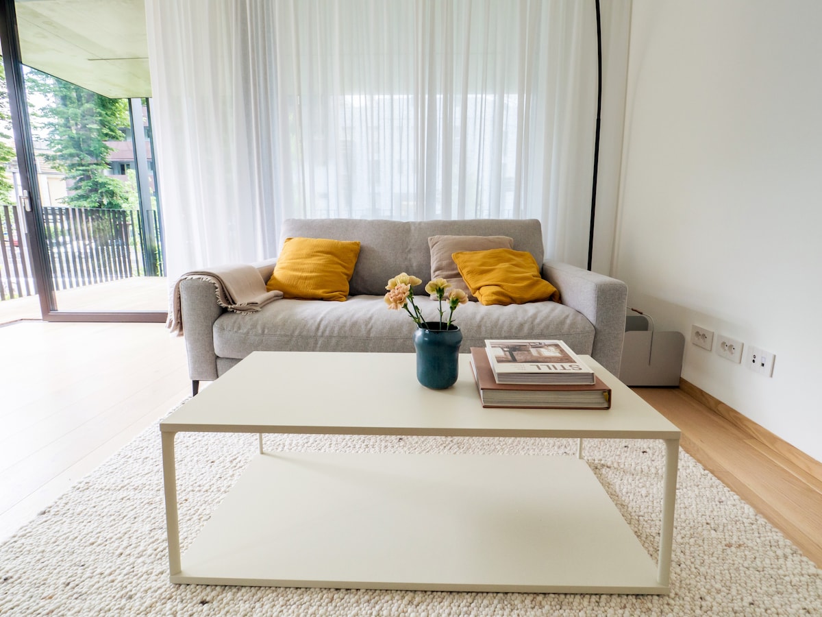Moderne lejlighed i Merano med balkon og store vinduer – panoramaudsigt, mens du laver mad og fra sengen. Fuldt udstyret køkken med filter og Nespresso-maskine, vaskemaskine, tv med tyske/italienske programmer, Netflix og YouTube. Gratis parkering i en låst underjordisk garage, 2. sal med elevator. Til to personer, ikke-rygere, ingen børn/dyr. Turistskat 2,20 €/ekstra nat. Centrum, spa og togstation er inden for gåafstand.