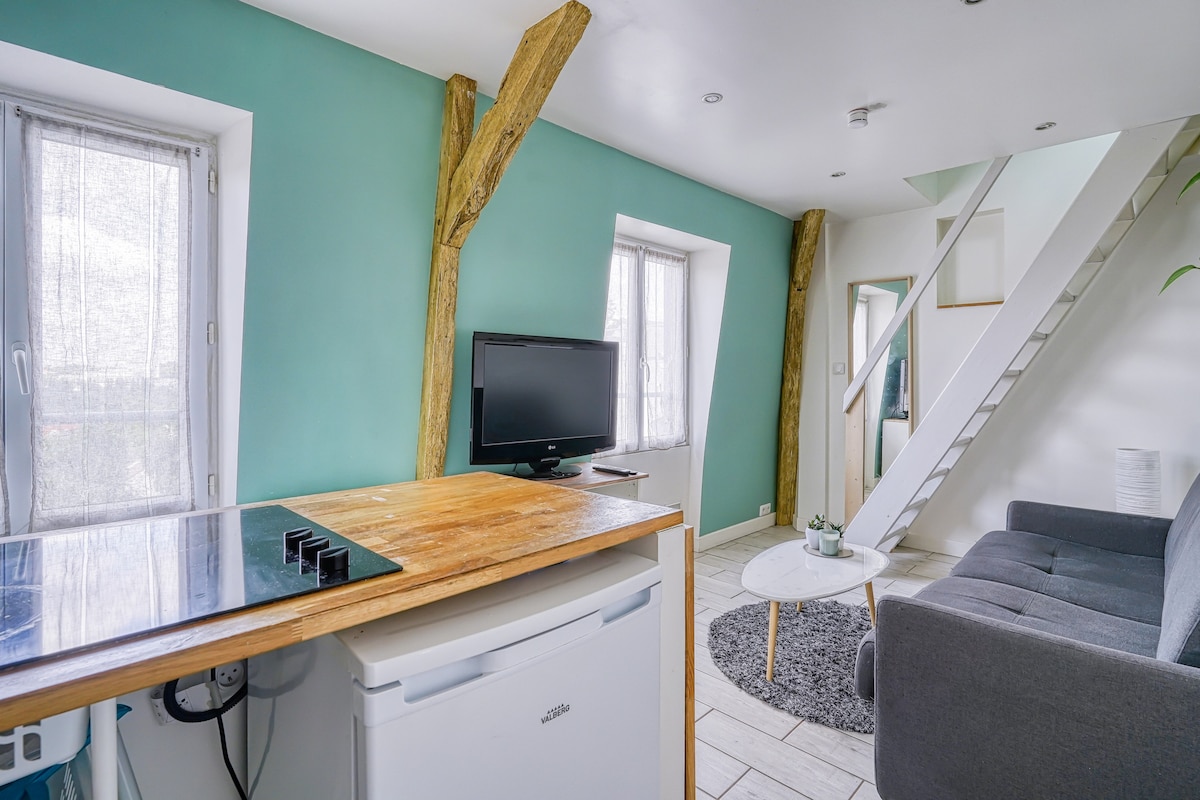 Enkeltstående lille🏡 hus beliggende på en grøn ø midt i byen. Du vil have et hyggeligt, fuldt renoveret studie med udsigt over haven. En lille terrasse, hvor du også kan slappe af i ro og mag. 📍 Beliggende i Mairie-kvarteret, 3 minutter fra Seinen og 8 minutters gang fra RER-stationen Maisons-Alfort-Alforville, hvorfra du kan nå Paris centrum på mindre end 10 minutter.