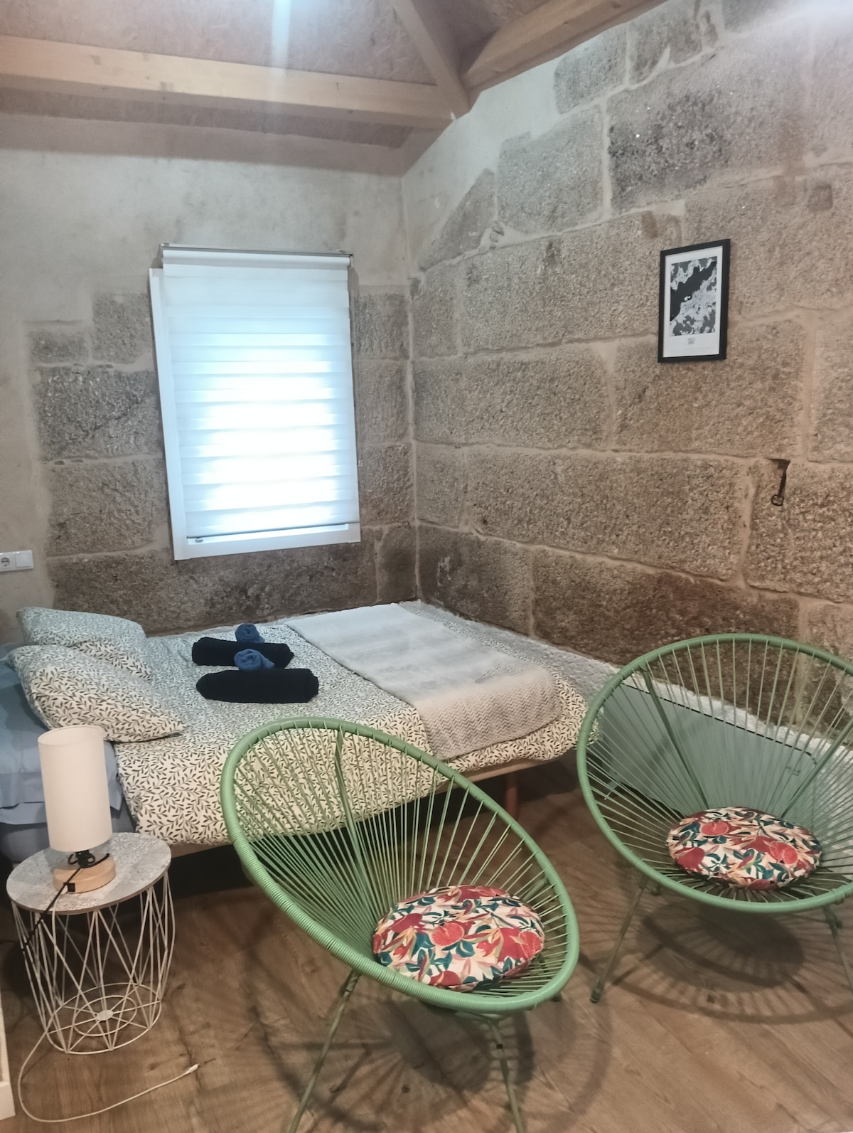 Soveværelse med eget badeværelse og separat indgang: Rummeligt soveværelse på 30 m2 med uafhængigt badeværelse og opholdsområde udstyret med vintage lænestole, tv, køleskab, mikrobølgeovn og morgenmadsbar Den nyrenoverede suite ligger i hjertet af Vigo, gågaden Principe, med alle former for serviceydelser ved foden af gaden, butikker, supermarkeder, restauranter..tæt på togstationer, busser, den maritime station, den gamle bydel og Arenal