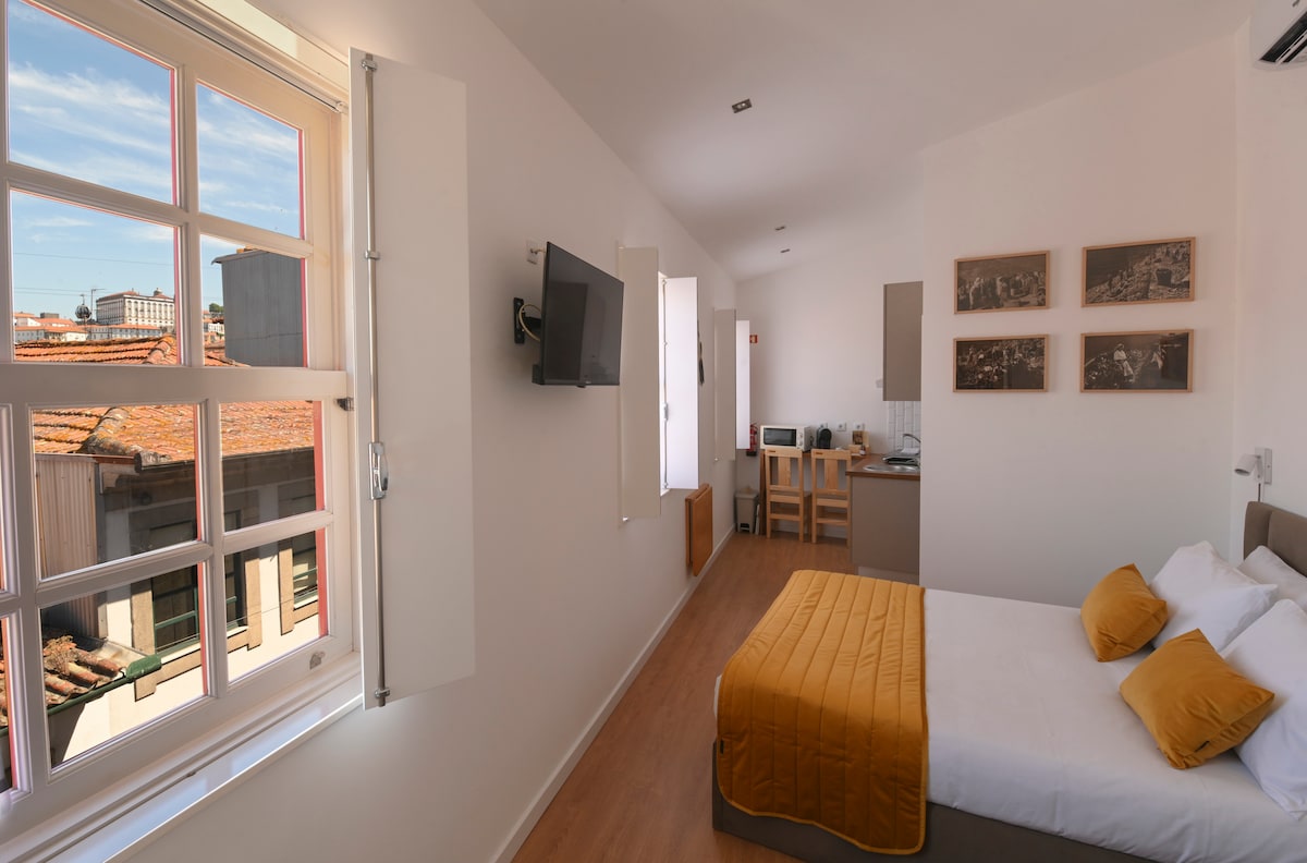25 m² stort studie med en unik 25 m² stor terrasse med enestående udsigt over Douro-floden og Porto by, har et udstyret køkken. Beliggende i det historiske område Vila Nova de Gaia, ved siden af wow, i hjertet af Porto-vinens kældre, 10 minutters gang fra den historiske D. Luis e da ribeira do Porto. Adgang til studiet er lavet af en trappe i det historiske centrum. Byens turistskat er værdien af byens turistskat. Anbefales ikke til bevægelseshæmmede. Vi har parkering 200 meter fra studiet