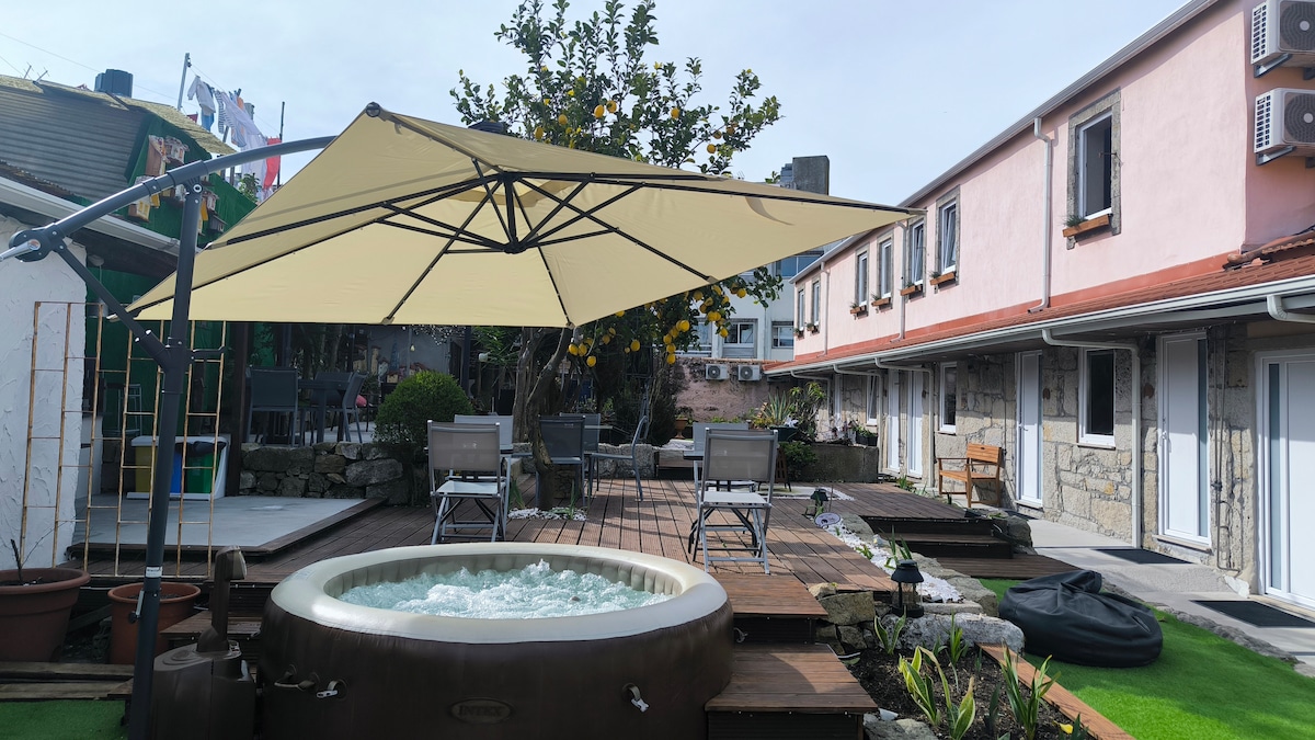 Vores traditionelle portugisiske hjem og have er et fredeligt tilflugtssted i hjertet af byen. Efter din dag med at udforske de pulserende gader i Porto, vil du slappe af i roen i vores frodige have. Find et skyggefuldt sted at slappe af med en bog, nyde et måltid i vores udendørs køkken eller bare slappe af i roen. Når aftenen falder, samles du omkring bålcirklen på vores private terrasse eller lade varmen i saunaen (ekstra gebyr) smelte væk dagen. Uanset om du leder efter ensomhed eller forbindelse, finder du den her.