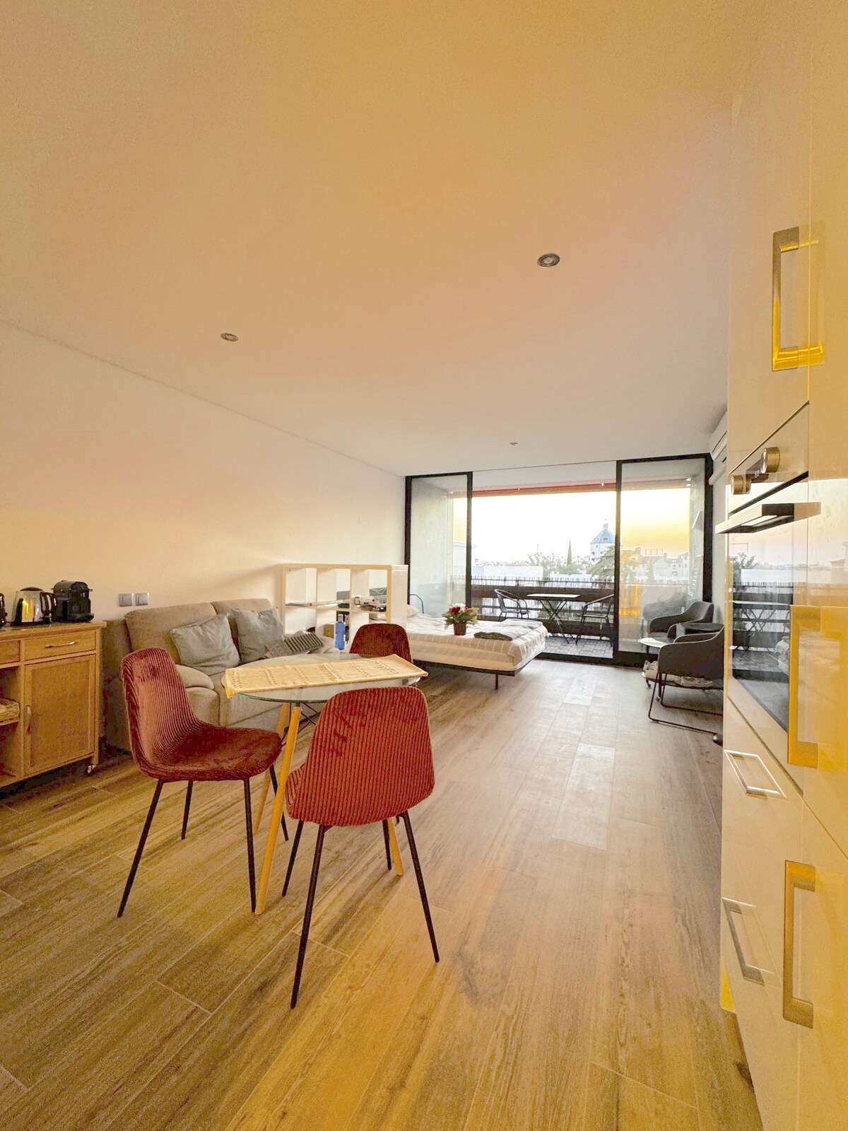 AlgarvianStudio is a spacious, fully furnished apartment 6 minutes walk from the Marina. Located on the 8th floor with a fantastic open view, tastefully renovated, and surrounded by greenery and quiet areas in the modern and lively tourist resort of Vilamoura, it has a comfortable double bed, air conditioning, heating, a double sofa bed, a fully stocked kitchen, and a lovely bathroom, making it a great space and base for your life and adventures. The apartment has free WiFi and a cable TV.