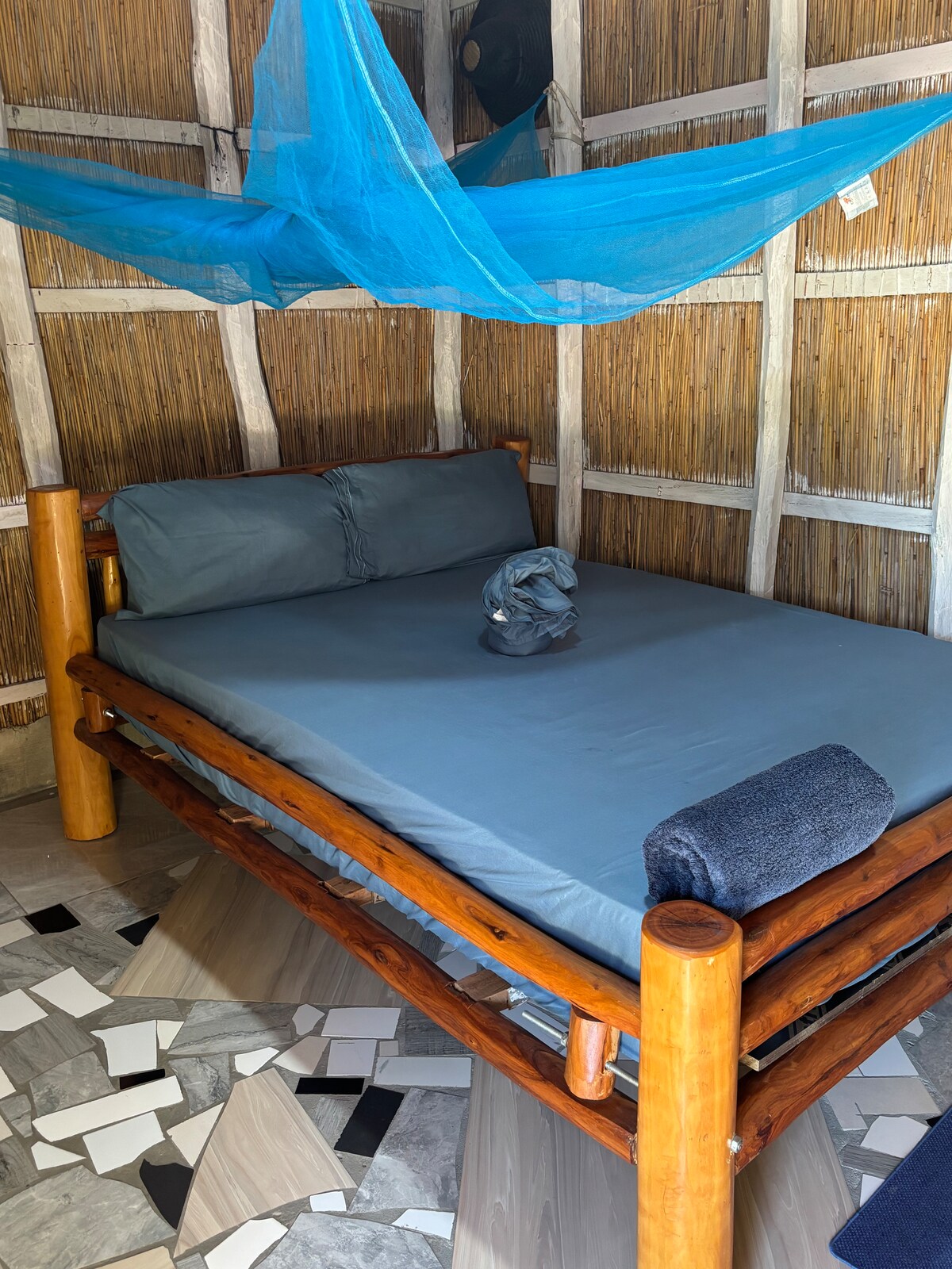Welcome to Vilanculos! View the Indian Ocean and the idyllic Bazaruto Archipelago from our lovely veranda and green garden with a private path to the beach. We have a simple but comfortable double room available with private bathroom with hot water, free unlimited Wifi and beach access, super centrally located in Vilanculos. The room is simple but in a fantastic location, with private bathroom and sea view. A second bedroom with twin bed on request Welcome! Price MZN2800 for 1, MZN3400 for 2