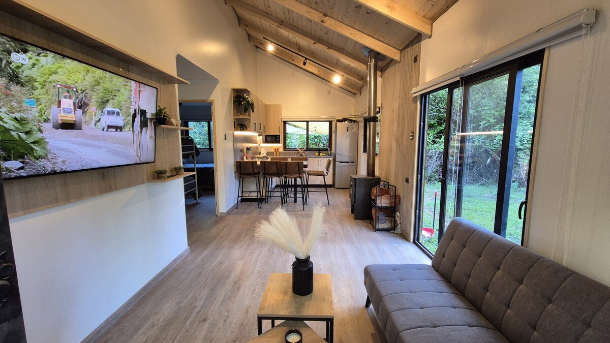 Nyd en flot udsigt mellem bjerge og floder, bryggeri og pizzeria i nærheden. Det ideelle sted at slappe af på et roligt, naturligt og fjerntliggende sted. Tricahue Park ligger 1 km væk til gåture, opdag pozones, vandfald... Rundt om hytten kan du nyde træerne, klatrevæggen, volleyballbanen, grillene, lejrbålsområdet og bordtennisbordet. Bøger, fiskestok, spil og instrumenter til rådighed i receptionen. Mulighed for at bestille morgenmad til 6.000 USD per person.