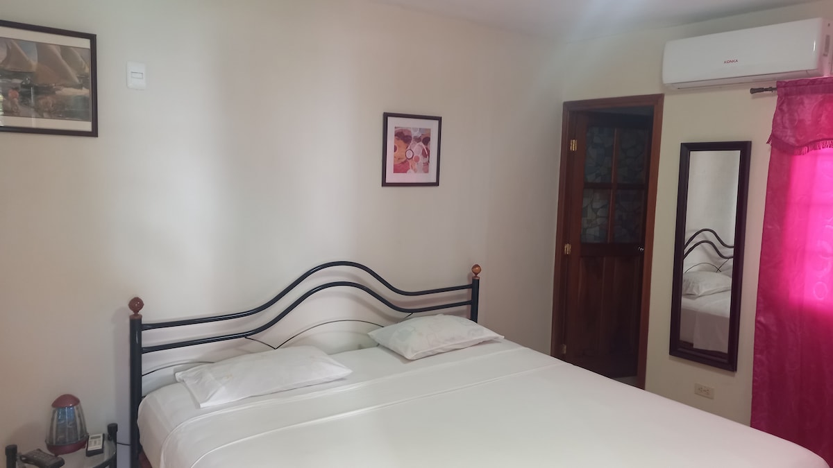 Vi tilbyder vores gæster et kolonialt hus i fremragende forhold, og de vil kunne nyde gang, stue, anden stue, soveværelse med indendørs badeværelse, gang og terrasse. Vi har to værelser med privat badeværelse. Værelse #1 har en dobbeltseng og en enkeltseng samt, værelse #2 har to dobbeltsenge, begge værelser har aircondition, ventilator, vindue, 110 V og 220 V stikkontakter, koldt og varmt vand 24h, hårtørrer, minibar med drikkevarer. Vi tillader kæledyr og har faciliteter til børn.