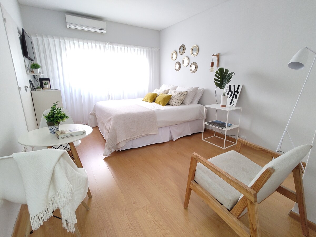 ✨ Fantastisk lejlighed i Palermo | PREMIUM beliggenhed! Moderne og udstyret i det bedste område i Buenos Aires. 🚶♂️ 1 min fra Distrito Arcos (Outlet Shopping) og Starbucks, 4 min fra metro og tog. ✔ Privat spabad, swimmingpool og fitnessrum. Hurtig ✔ WiFi, Smart TV og komplet køkken. ✔ Vaskemaskine i bygningen (mod betaling). 🔑 Check-in 24 timer fra opholdets begyndelse. Ankommer du sent? Det er ikke noget problem! Sikkert og roligt📍 område, tæt på restauranter, markeder, butikker, barer og turistattraktioner.