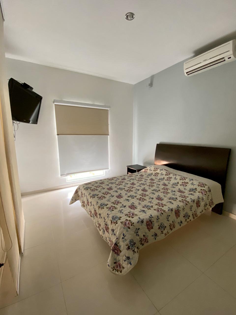 Denne elegante bolig er ideel til gruppeture eller til at nyde et meget privat sted med fremragende finish som par. Med en fremragende beliggenhed tæt på 24 timers marked og apotek,med store rum med swimmingpool, kontor, rekreative områder og parkering til to biler. Alt dette rum er fordelt over to etager og en tredje sal med terrasse og privat værelse. Det har 4 værelser, alle med aircondition, med meget komfortable dobbeltsenge og to ekstra værelser med enkeltsenge.