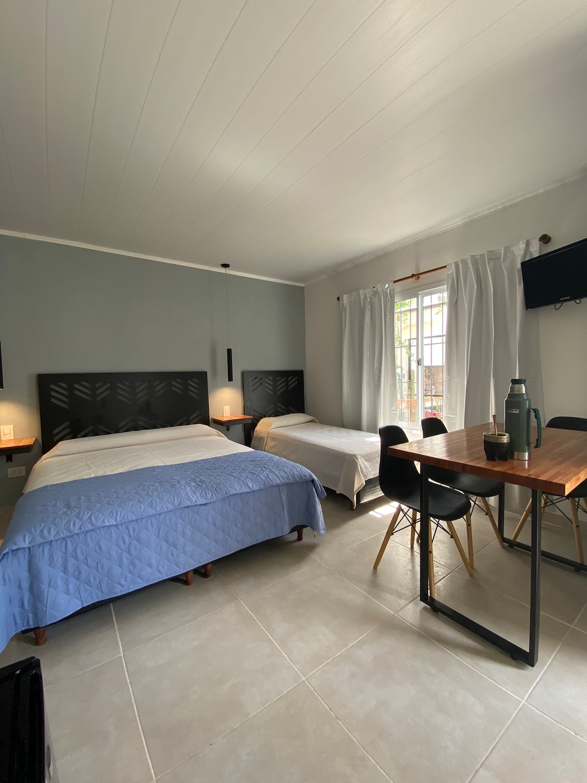 Cálido bungalow ubicado en la ciudad de San José, Entre Ríos, con amplio parque, piscina habilitada en temporada estival y quincho. Ideal para parejas, amigos o familias de hasta 4 personas. Cuenta con excelentes servicios y equipamiento, en una de las zonas más tranquilas de la ciudad pero aún así, cerca de todo, a menos de 500mts. de Autovía Artigas (Ex Ruta 14) y a 1500 mts. del centro de la ciudad, en el centro de la Microrregión Turística Tierra de Palmares. ¡Te esperamos!