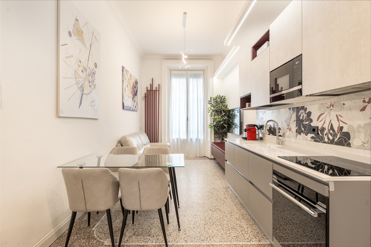 I området Fashion & Design i centrum af Milano, få skridt fra den berømte BAR BASSO, mødested for designere og stylister, er lejligheden fuldstændig renoveret, alt i fransk parket, den består af en stue, soveværelse, badeværelse og to vidunderlige balkoner i liberty stil. Lejligheden ligger tæt på Lima-Loreto metroen og offentlig transport. Derudover er området rig på kød- / fiskerestauranter, barer, der er meget kendte i det milanesiske liv, pizzeriaer, apoteker, markeder og butikker.