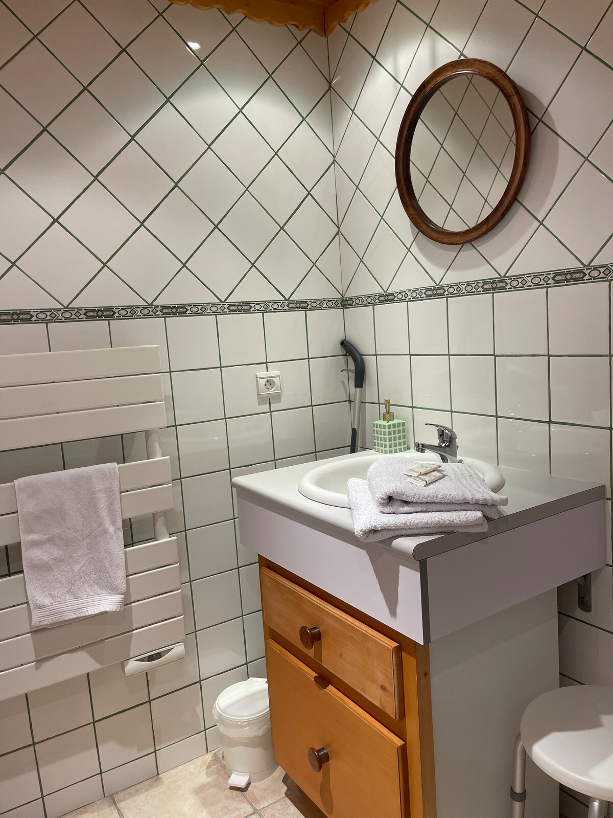 Lejlighed beliggende på 1. sal i et hus i hovedbyen Villaroger (12 km fra Bourg Saint Maurice) Lejligheden har et soveværelse med dobbeltseng og en stue med spiseplads og en opholdsstue med en sovesofa til 2 personer. Udstyr: TV, wifi, køleskab, elkogeplader, ovn, køkkenredskaber, sengetøj (lagner, håndklæder, handsker). Badeværelse + separat toilet