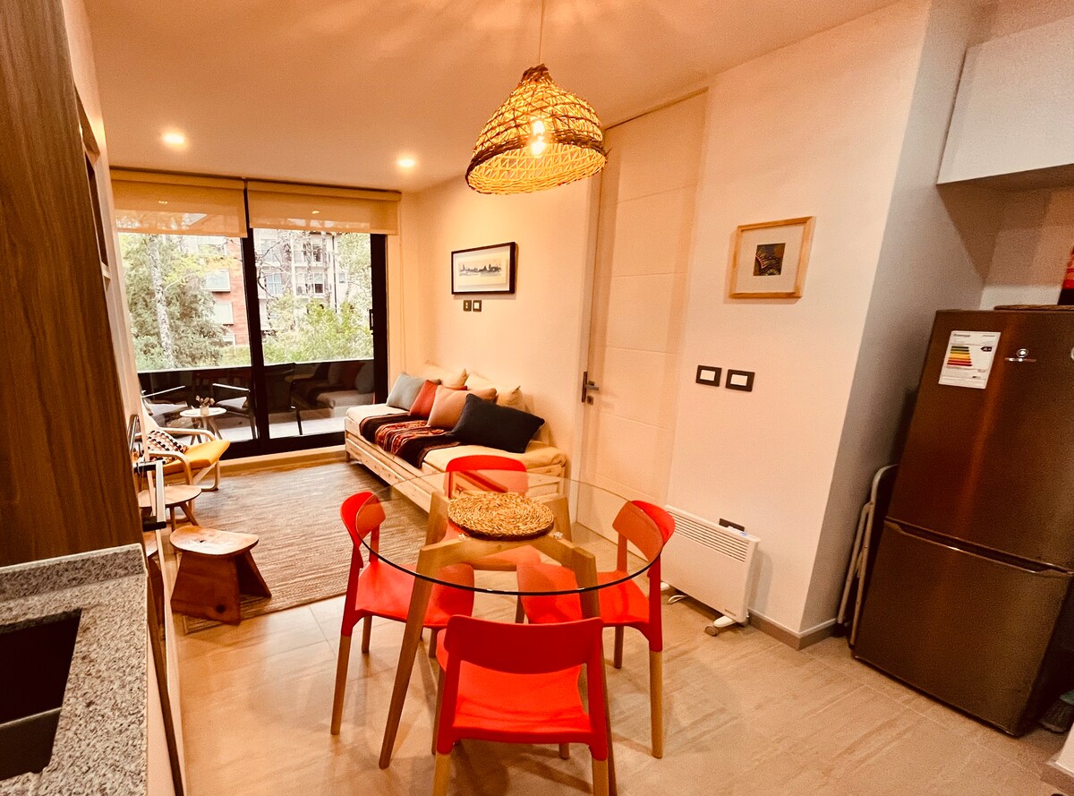 Hyggelig etværelseslejlighed med eget badeværelse, stue-spisestue og åbent køkken, beliggende i en privat lejlighed med smukke haver. Perfekt til to gæster. God fornøjelse: 🏊♂️ Pool, der er egnet til børn og voksne 🏰 Legeplads til børn 🌲 Klubhus 🧖♂️ Sauna og spabad (ekstra gebyr) 📍 Ideel beliggenhed, tæt på: 🏘️ 5 minutter fra Pucóns centrum 🏞️ Beaches ⛷️ 25 minutter fra skisenteret ♨️ 40 minutter fra de varme kilder i Huife 🌿 25 minutter fra den botaniske termiske park 🌄