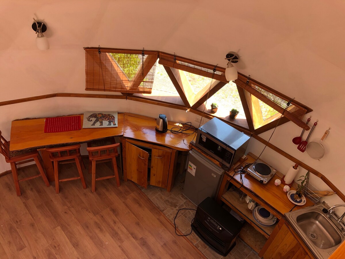 Nyd en unik oplevelse ved at bo i en hyggelig geodætisk kuppel beliggende i nærheden af Pucón, Caburgua og dens vigtigste turistattraktioner såsom nationalparker, skisportssteder, varme kilder, søer og floder. Også tæt på supermarkeder og lokale virksomheder. Dette rum er designet til afslapning og kombinerer komfort, modernitet, privatliv og en direkte forbindelse til det naturlige miljø.