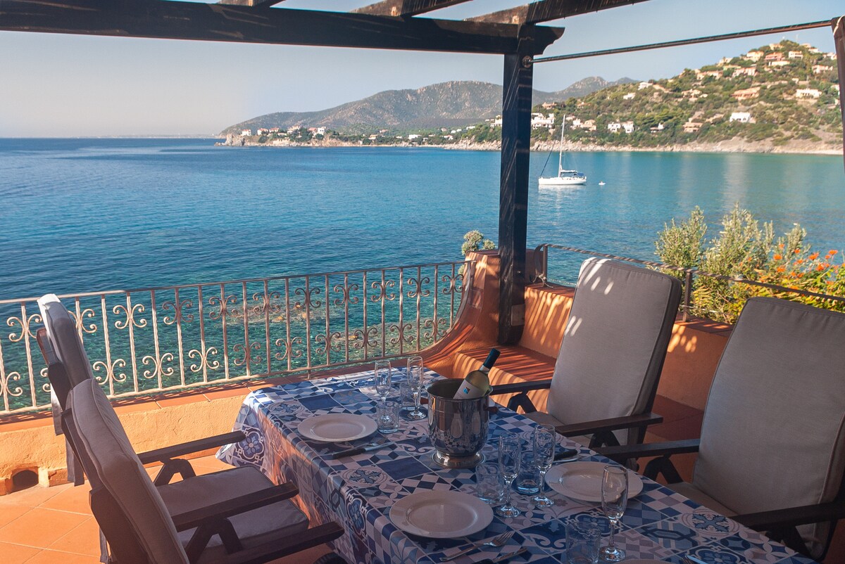 Ferie på Sardinien! Elegant hus et par skridt fra havet, udstyret med alle bekvemmeligheder. Ejendommen har en betagende havudsigt både fra terrassen og fra balkonen i det store soveværelse, især solnedgangen, som du ikke vil glemme let! Ideel til afslappende ferier og en kort gåtur fra den smukke strand Kala e Moru. Følg de sociale mediesider "Sardinian holidays" for at holde dig opdateret og anmode om et personligt tilbud.
