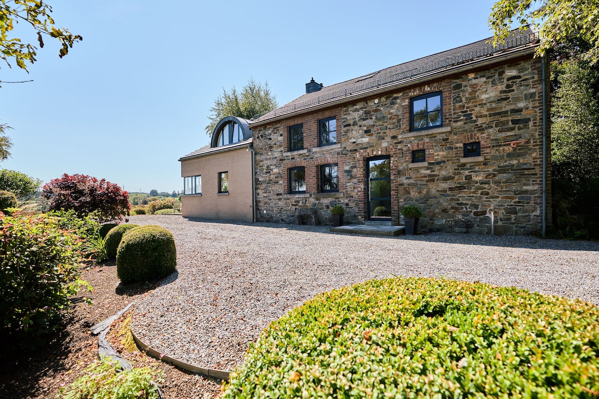 Stenhus (restaureret gammelt bondehus) med enestående udsigt over dalen. Huset er meget komfortabelt, veludstyret med sin store åbne ild, der er behagelig til lange vinteraftener. Beliggende i en lille blindgyde landsby, meget stille og 10 meter fra skoven og smukke markerede vandreture. En god mundfuld frisk luft i hjertet af naturen med en lang række aktiviteter i nærheden: vandreture, mountainbike, Hautes Fagnes, termiske bade, golf, Circuit de Francorchamps ...