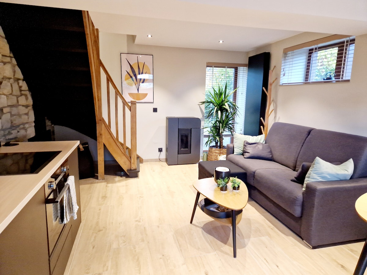 Vores gîte, der er beregnet til 2 personer, er en ideel romantisk pied-à-terre. Den ligger i en rolig beliggenhed i landsbyen Harzé. Det er også det perfekte sted for dem, der elsker udendørsaktiviteter. Jeg stiller EL-CYKLER og en GPS til rådighed. Lukket garage til dine cykler og motorcykler. Vores gîte ligger tæt på Remouchamps-hulerne, Monde Sauvage, Ninglinspo, Durbuy, Spa, La Roche en Ardennes, Coo-vandfaldet, skiløjper og mange lokale bryggerier.