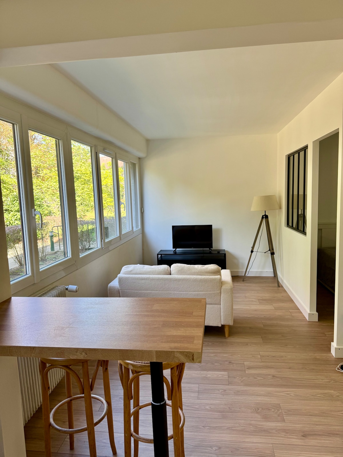 Uafhængig studiolejlighed på 23 m², elegant og ren, tæt på Paris, ideel til en mellemlanding eller et længere ophold. Beliggende i et stenhus, 12 minutters kørsel fra Orly lufthavn og 10 minutters gang fra rer C (18 minutter fra Paris). Komfortabel dobbeltseng (160 x 200), 65" OLED-tv, wi-fi. Udstyret køkken (ovn, kaffemaskine, brødrister)... Vaskerum med vaskemaskine og tørretumbler. Stille boligkvarter, tæt på butikker, restauranter, grønne områder og offentlig transport.