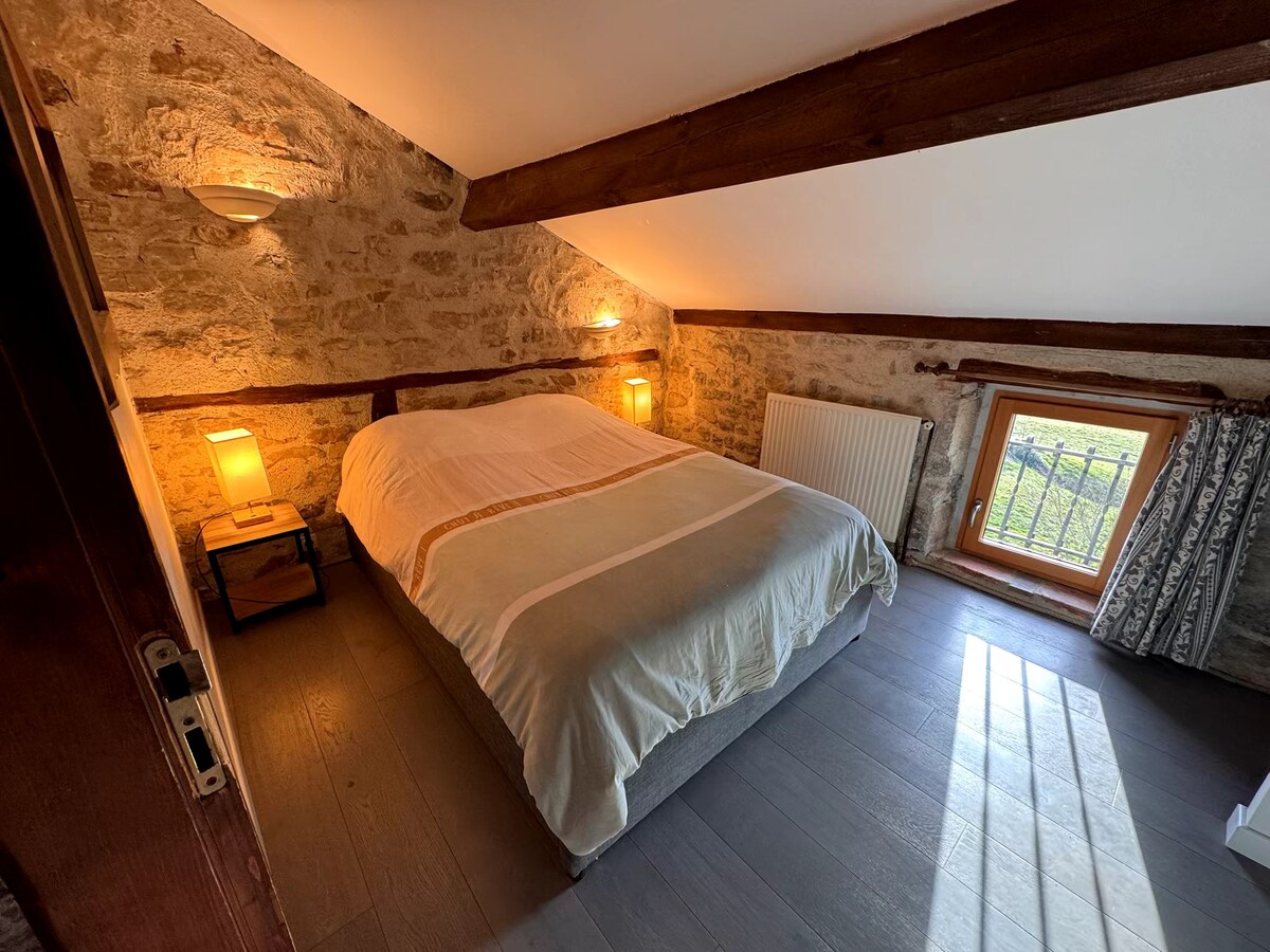 Charmerende restaureret atelier i en stensamling, i hjertet af den gyldne trekant og rolig. Du vil nyde den omkringliggende natur, de mange vandrestier og de smukke bemærkelsesværdige landsbyer i nærheden. Ideel til dem, der elsker landet, dyr og naturen. Du kan komme alene, som par eller med venner. Sengene på 90 x 190 kan sættes sammen, så de bliver til en seng på 180 x 190. En klikklap kan fungere som en booster til et barn eller en tredje person.