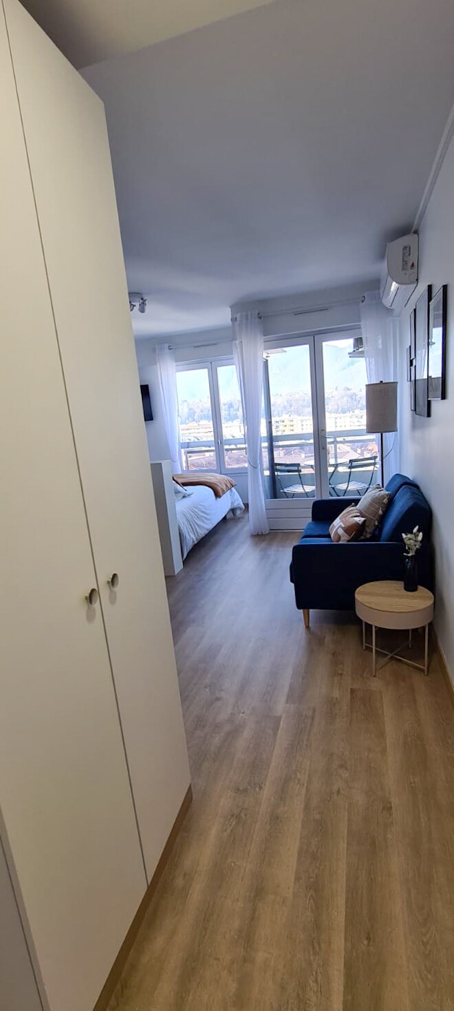 Nous vous proposons ce superbe appartement de charme de 40m2 (T2), indépendant, neuf et climatisé, qui vous offrira tout le confort souhaité. Parfait pour les séjours professionnels. Étant au 4ème étage de l'immeuble avec ascenseur, vous bénéficierez d'une vue sur les montagnes. Localisation : À Chambéry en hypercentre à 1 min de la fontaine des éléphants et à 20 minutes du lac du Bourget. Proximité Gare de Chambéry à 600 mètre. Aéroport à 10 min. Arrêt de bus à 2 min à pied.