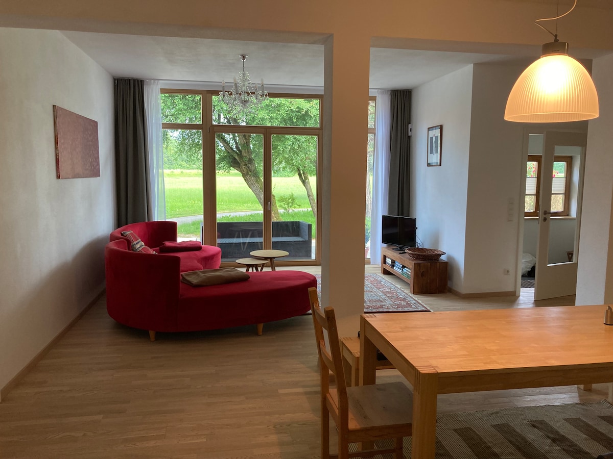 Vores meget lyse, idylliske og roligt beliggende lejlighed ligger i stueetagen i vores hus og har direkte adgang til din del af terrassen og haven. Den nye lejlighed er indrettet i moderne landlig stil og er meget veludstyret. Frasdorf ligger ved foden af Chiemgau-bjergene, beliggende i de bløde bakker i Voralpenland. Kun otte kilometer fra Chiemsee og Simssee. Centralt beliggende mellem München og Salzburg og langt væk fra stress og jag, og det hele året rundt.