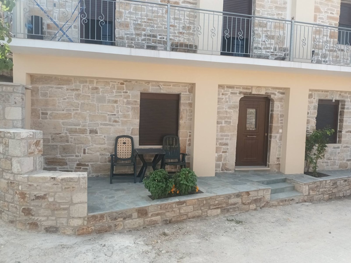 Nyd de enkle ting i dette rolige og centrale overnatningssted. Vores lejlighed ligger på hovedvejen, der krydser landsbyen Kato Steni. Det er klædt eksternt i Dirfion-steni Dirfys' jordfarver og naturen omkring. Bagsiden af lejlighederne har udsigt over Stenis kløft,fyldt med tårnhøje platantræer, valnøddetræer,granatæbler og kirsebærtræer tættere på kløften.