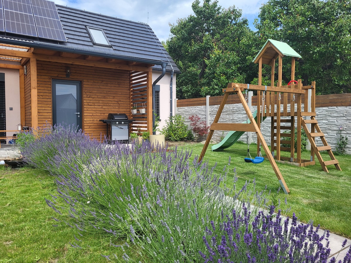 Huset med en have under Pouzdřanská stepí tilbyder et rummeligt og roligt fristed – ideelt for dem, der elsker natur og gåture. Boligen ligger i en rolig boligkvarter i landsbyen, bogstaveligt talt få skridt fra naturen og omfattende vinmarker. Der er en terrasse med adgang til en naturlig have inspireret af steppeflora. Den unikke beliggenhed giver rige muligheder for ture i området – cykelruter med vin, Pálava, Mikulov, Lednice eller Pouzdřanská steppe og Kolby vingårde.