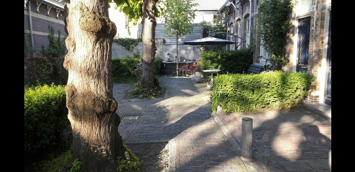 knibbel knabbel knuisje huisje verborgen in het mooiste gedeelte van de binnenstad en dichtbij de mooiste strandjes en natuur van den bosch. Eindeloos fietsen en wandelen: midden in de stad maar in alle rust ligt dit hofje. Via een prachtig aangrenzend speeltuintje voor de kindjes kom je uit midden in de stad. Loop je het hofje uit naar boven volstrekt er zich een prachtig natuurgebied. Gratis parkeren om het hoekje voor (lange) weekenden. bij een langer verblijf kijken we samen naar optie.